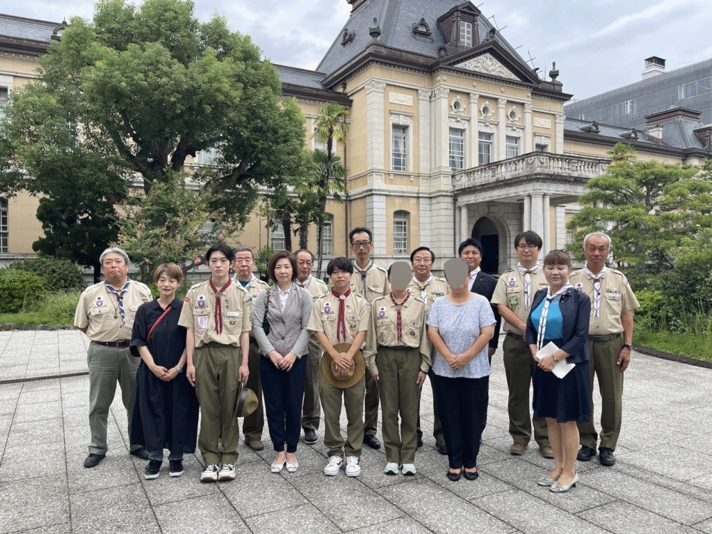 西脇京都府知事に授章の報告 表敬訪問させていただきました 京都府庁で記念撮影 渡辺邦子府議や瀧脇正明府議の姿も